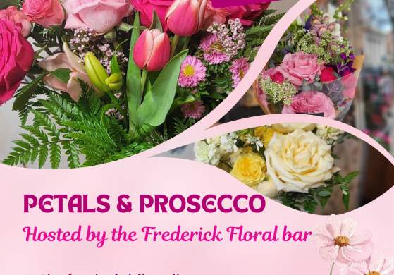 Join us in the heart of Frederick for a dreamy hour of sipping bubbly and creating your own beautiful floral arrangement. It’s the perfect after-work unwind, girls’ night out, or spring date night.